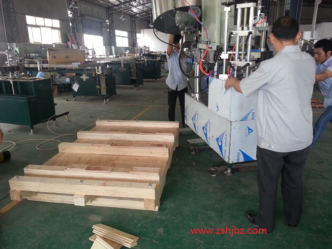 安全谨慎地把设备放到木箱底座上